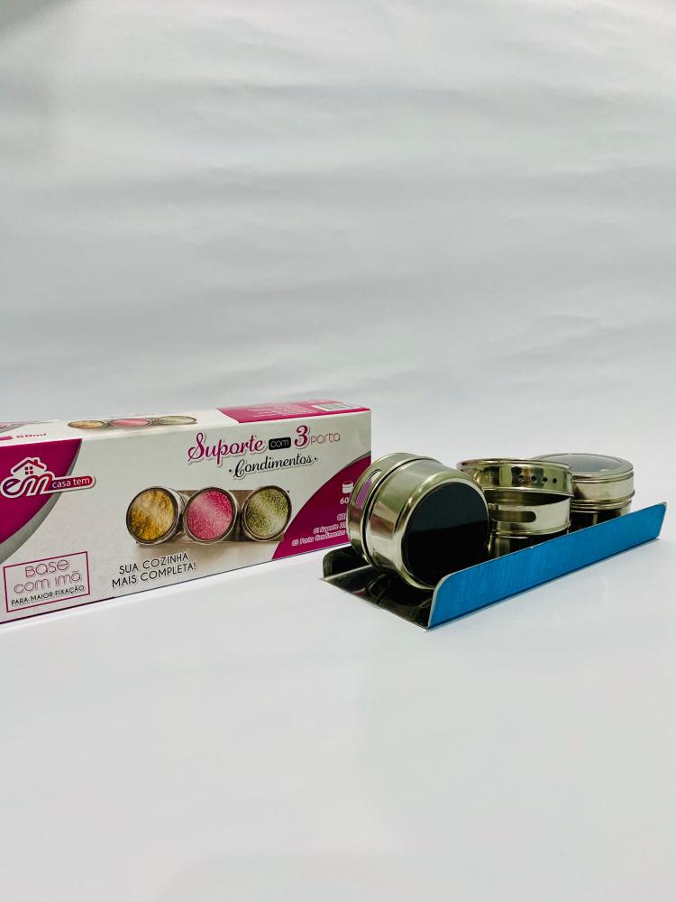 Porta Tempero Organizador De Condimentos Aço Inox Magnético 3 Potes 1 Base