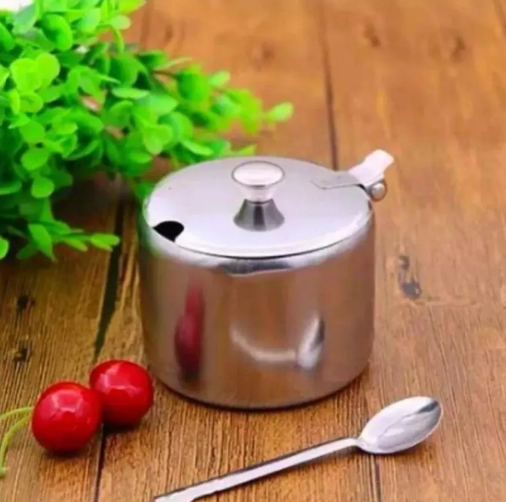 Açucareiro Aço Inox Com Colher Em Casa Tem 8x6cm