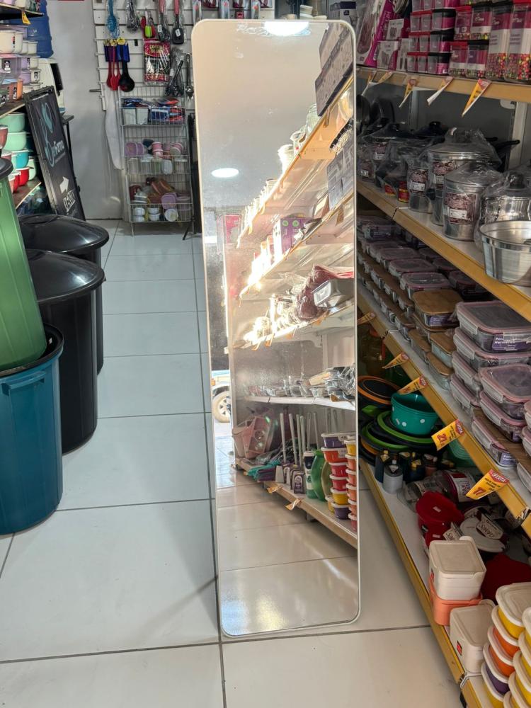 Este espelho de corpo inteiro conta com moldura plástica preta, estrutura leve e suporte em aço, oferecendo duas opções de uso: pendurado na parede ou apoiado com o suporte incluso. Ideal para quartos, closets, halls e lojas.